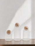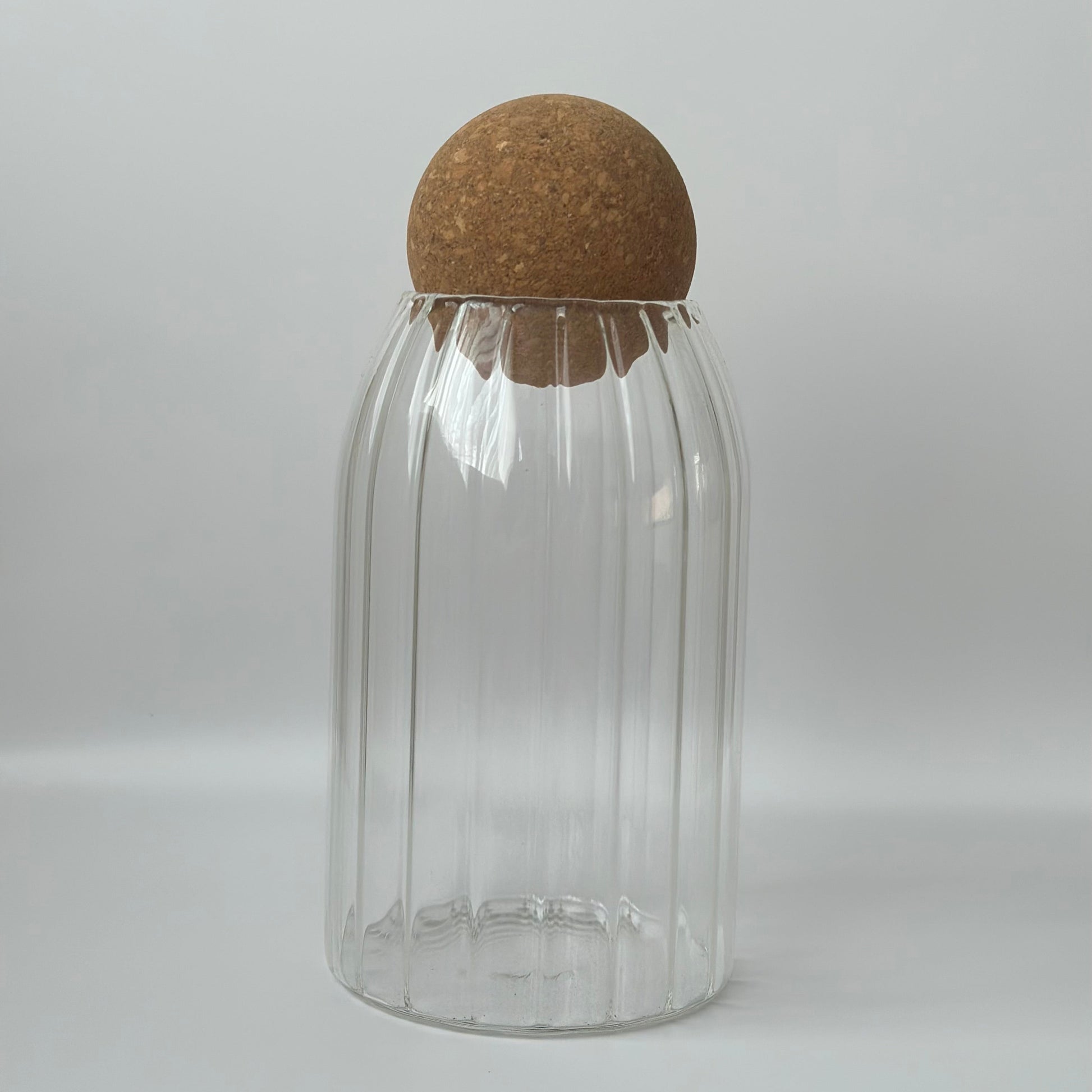De Ripple Jars combineren strak geribbeld glas met een natuurlijke kurken dop. Ideaal om ingrediënten te bewaren met een vleugje stijl en moderniteit. Beschikbaar in drie maten, perfect voor een georganiseerde en elegante keuken